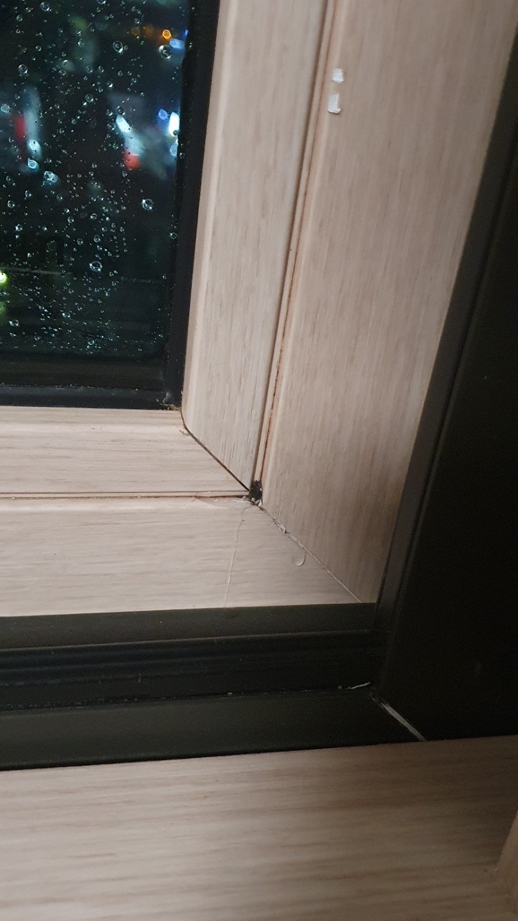 비가 많이 내리는 날이면 입주민들은 창호에 휴지를 끼우고 살고있고, 약한 비가 내리는 날에도 누수는 발생합니다.