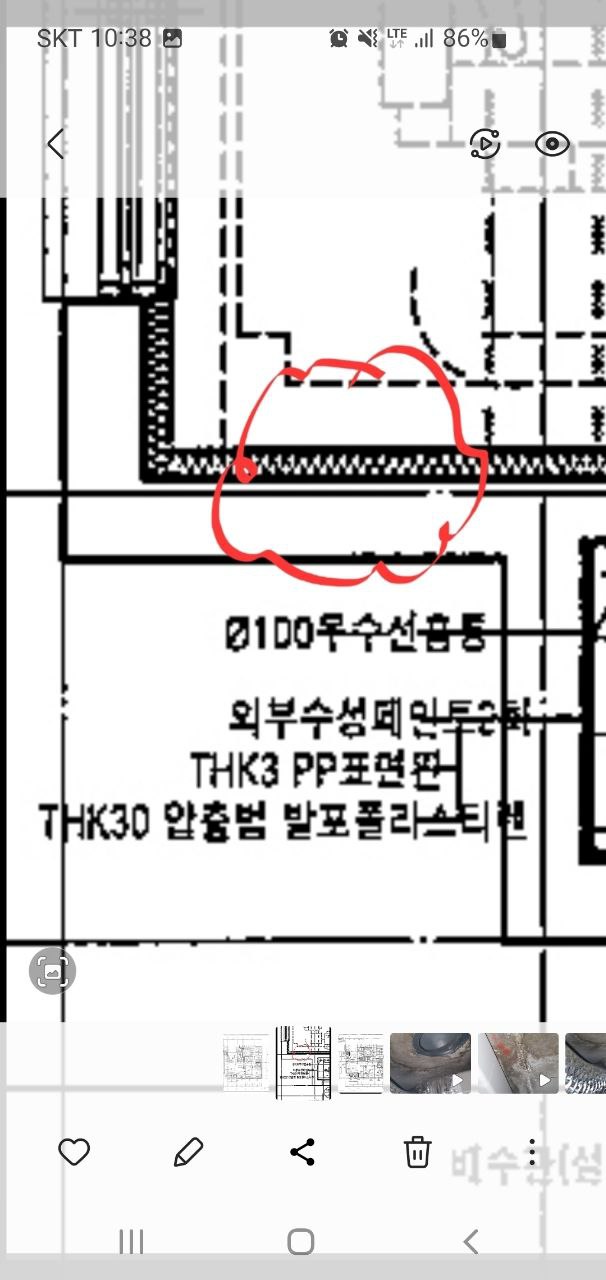 감사합니다. 윗글에서 동그라미 부분 확대도면 입니다. 거실  창호 아래쪽 ㄴ부분만 내벽 재단열 공사하고 실외기실과 대피실이 있는 내벽은 불필요 할것 같아서요.. 동그라미 친 내벽 걸래받이 위에 위층에어컨 매립배관이 있고 그 곳에 사진처럼 결로가 심한상태입니다.