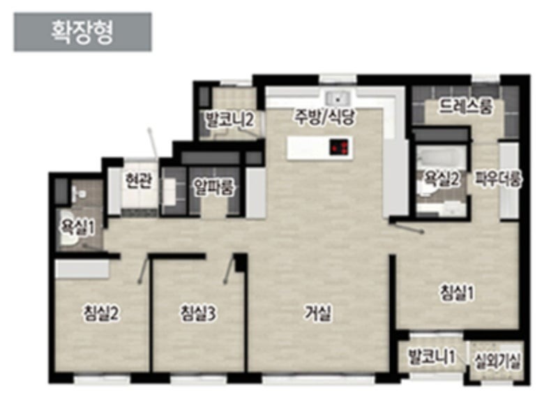 평면도에서 거실과 침실사이 벽에 에어컨이 있고 약 3~3.5M 될것같습니다