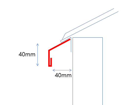 해결은 같은 종류의 금속판을 아래와 같은 크기로 접어서 접착을 하시면 되세요.