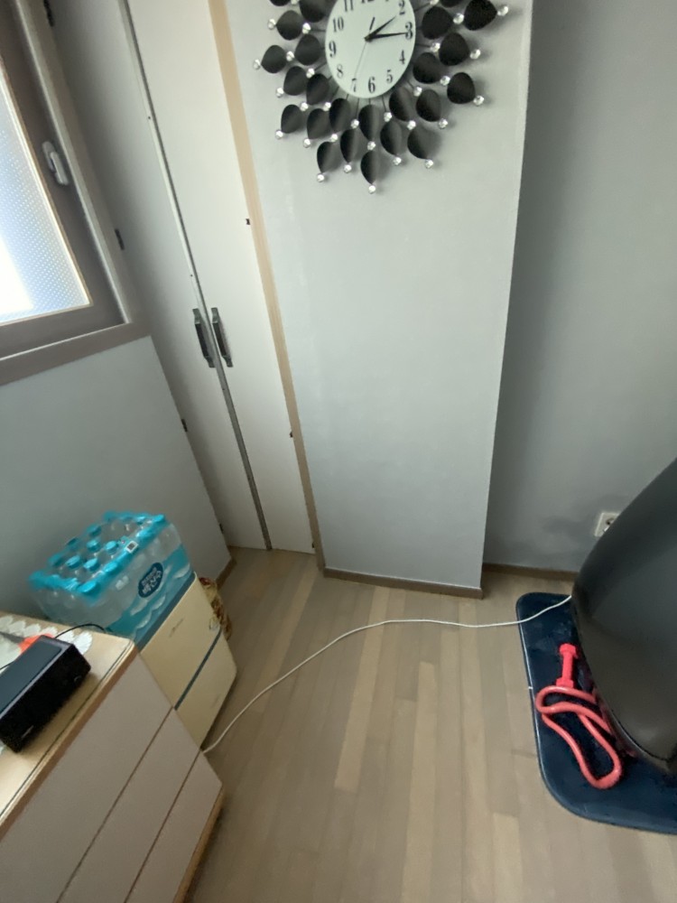 욕실옆방은 확장한 방입니다. 2년정도 전에 아래 사진처럼 런닝머신 옆벽 하부에 물에 젖은것 처럼 오염이 되어있더라구요