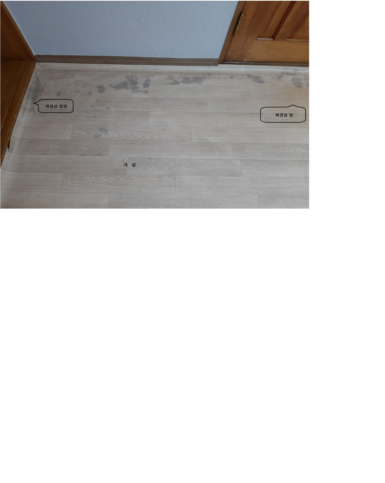 그 화장실 옆 쪽의 물기가 있다고 말씀하신 부분의 장판을 일부라도 걷어서 말려 보시는 것이 좋겠습니다.