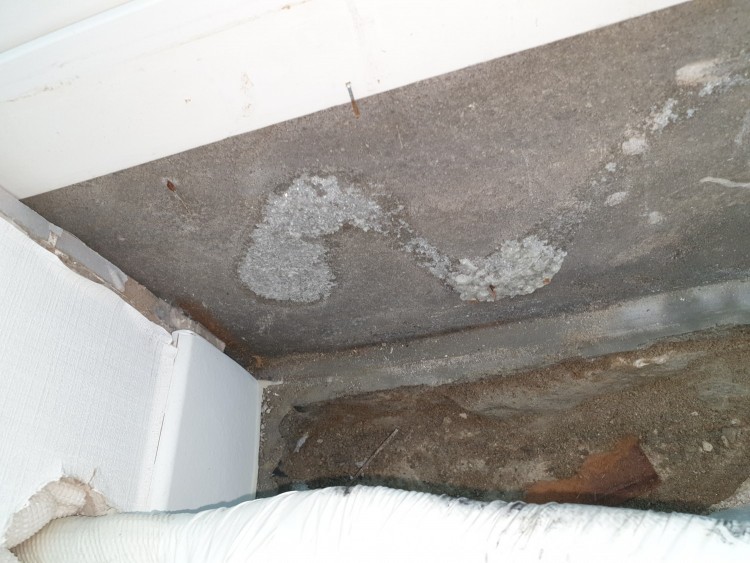9월 중순에 거실쪽 벽지에 곰팡이가 핀걸 확인했고, 인테리어 사장님과 장판을 들고 바닥에 구멍을 내본 결과 확장 거실 이중샤시 왼쪽아래 부분과 거실 곰팡이가 핀 부분까지 젖어 있는걸 확인했습니다