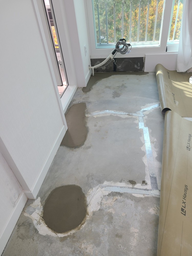 인테리어 사장님이 누수 잡힌거 같다고 파놓은 바닥을 다시 미장했는데요.