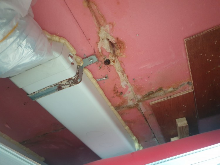 틈새사이 곰팡이 겉에서 제거하고 그부분 폼 쏴서 마감해주겠다