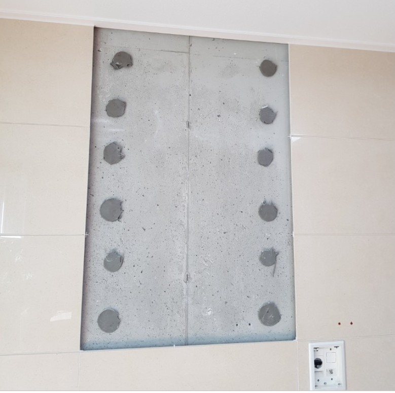 또 특이점으로 바깥 창문 및 방문을 모두 닫아 실내를 밀폐 상태로 만들어 놓은 후, 주방 후드를 작동하면 아트월 쪽 틈새 사이로 시멘트 습한 냄새가 더 강하게 나오고 아트월 콘센트쪽에 아트월과 콘크리트 사이에 손을 대보면 그쪽에 약간의 바람이 흐르는걸 느낄수 있습니다.