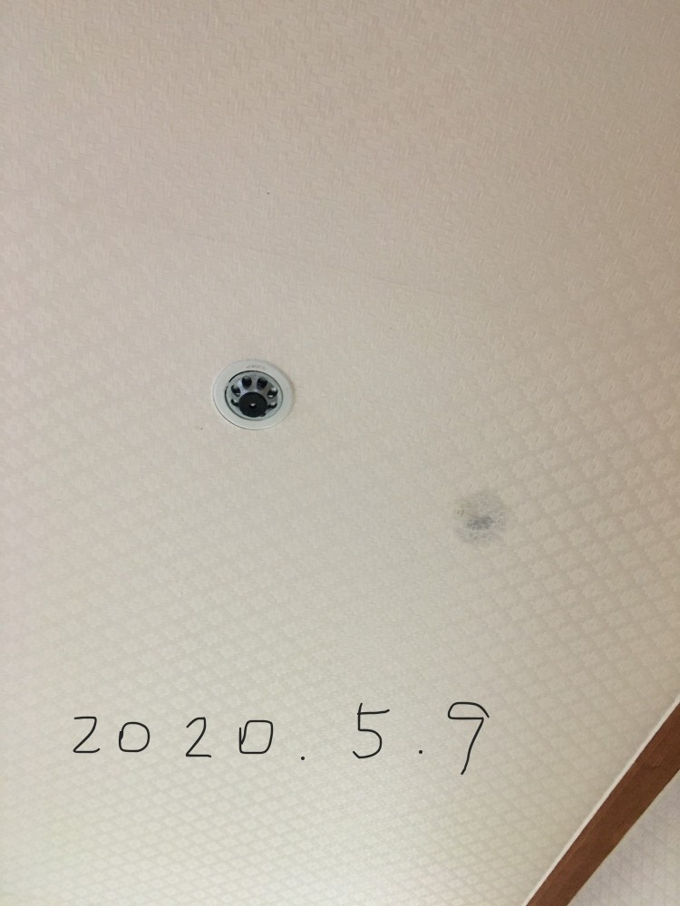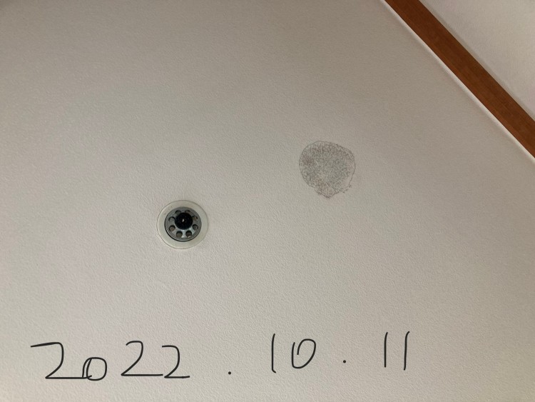 2020년 5월 천장 도배했을 때, 스프링쿨러의 옆 부분에 위치한 검은 얼룩을 처음 발견했습니다. 이후 2022년 8월 폭우가 쏟아지던 때, 2년 전보다 검은 얼룩이 더 커진 것을 확인하고, 관리사무소에 문의했습니다.