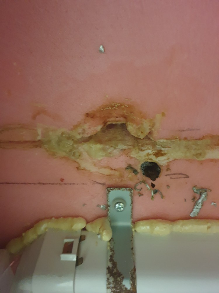 단열재와 폼 사이로 물이 한방울씩 뚝뚝 떨어집니다