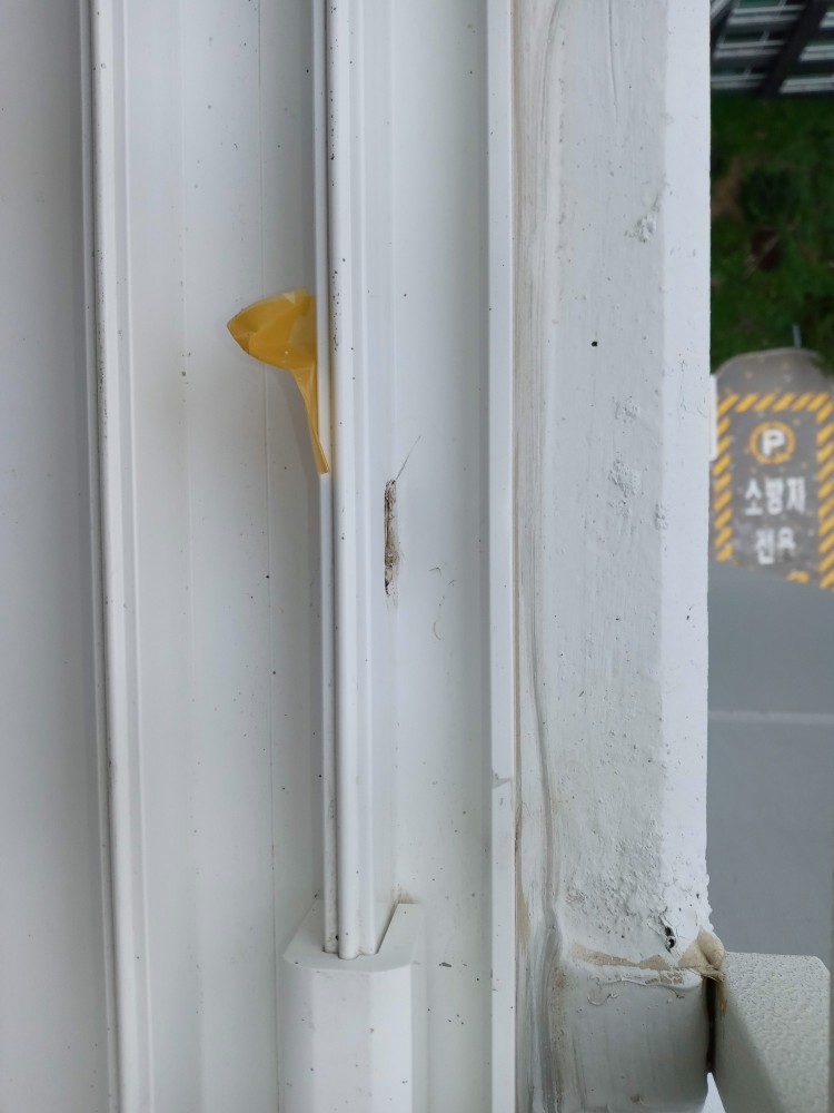 신규아파트에 입주했는데 샤시에 크렉이 있고 본드와 실리콘으로 대충 보수해 놨네요.
