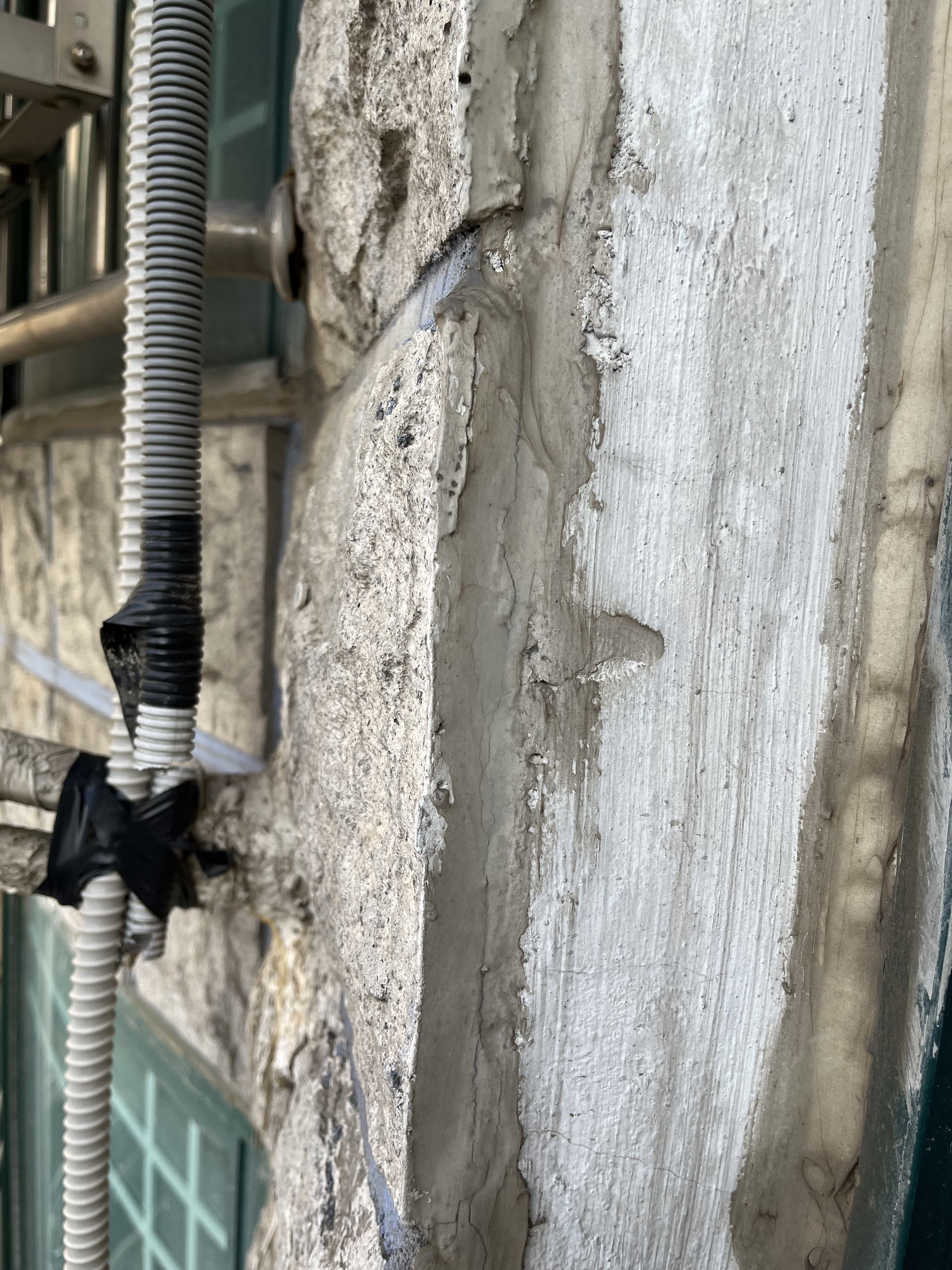 그럼 다행(?)히 구조체-단열재-석재타일의 순서가 아니라, 콘크리트 표면에 그냥 석재타일을 붙인 것으로 보입니다.