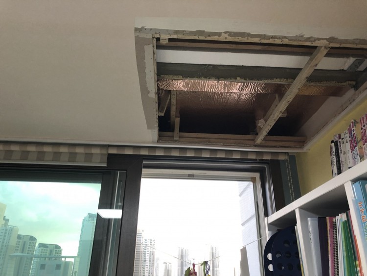 아파트 작은 방 천장 뜯어 놓은 사진입니다.