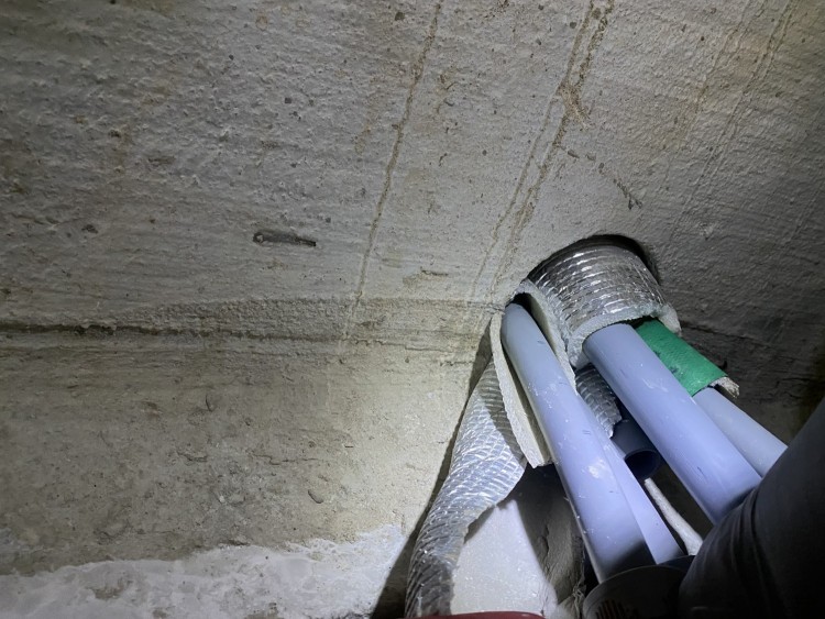지하에서 보일러 배관이 집쪽으로 들어가는 부위입니다.