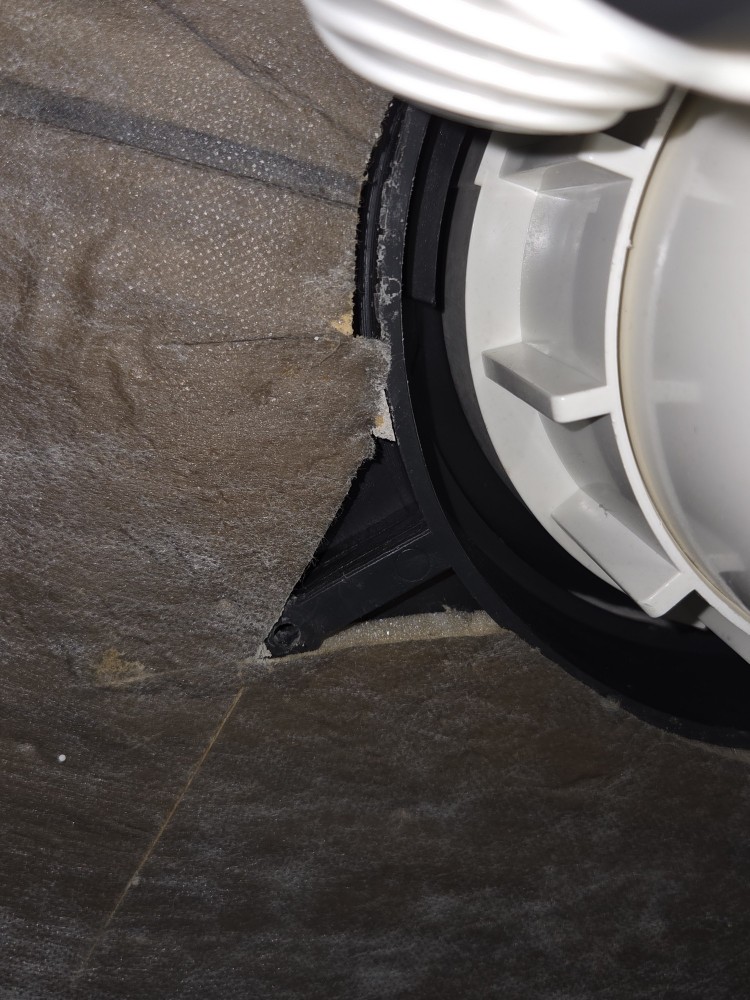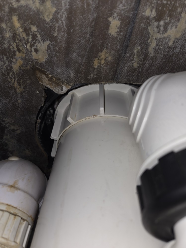 다만 깨졌다고 하더라도 이로 인한 누수는 없어야 합니다. 그러므로 예측컨데 배관과 콘크리트 사이의 방수가 훼손되었을 가능성이 있으며, 배관 주변 타일과 몰탈을 제거하고 방수를 다시 하는 것 외에 달리 대안은 없습니다.