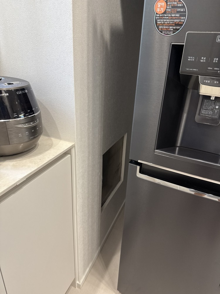 주방에 다음과 같은 위치에 바닥에서 천장으로 올라가는 메인덕트가 설치되어있습니다