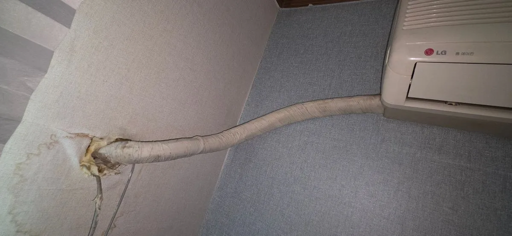 시공 전에 사진을 조금더 디테일하게 찍었어야 했는데....  에어컨 쪽은 실리콘으로 마감이 되어서 제가 어떻게 하긴 어려워 보이고 콘센트 부분이 맹카바로 마감되어있긴 해서 지금이라도 뜯어서 사진을 찍어봐야 할까요?