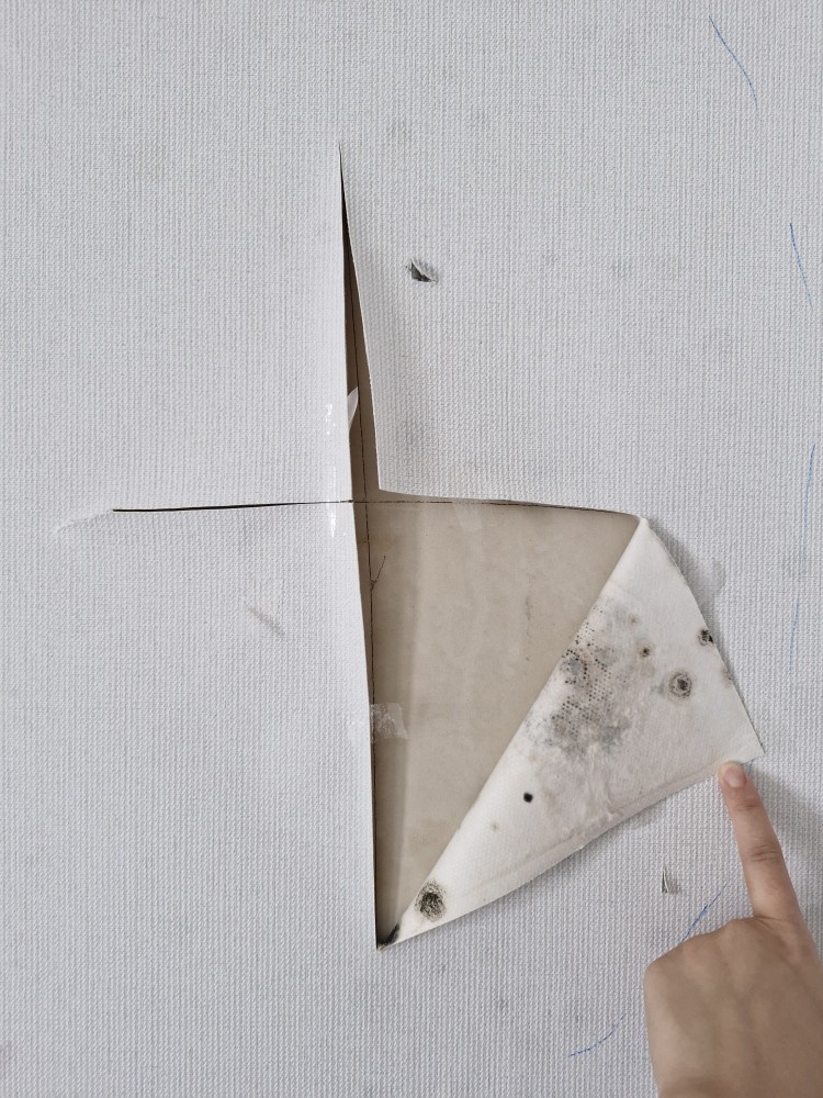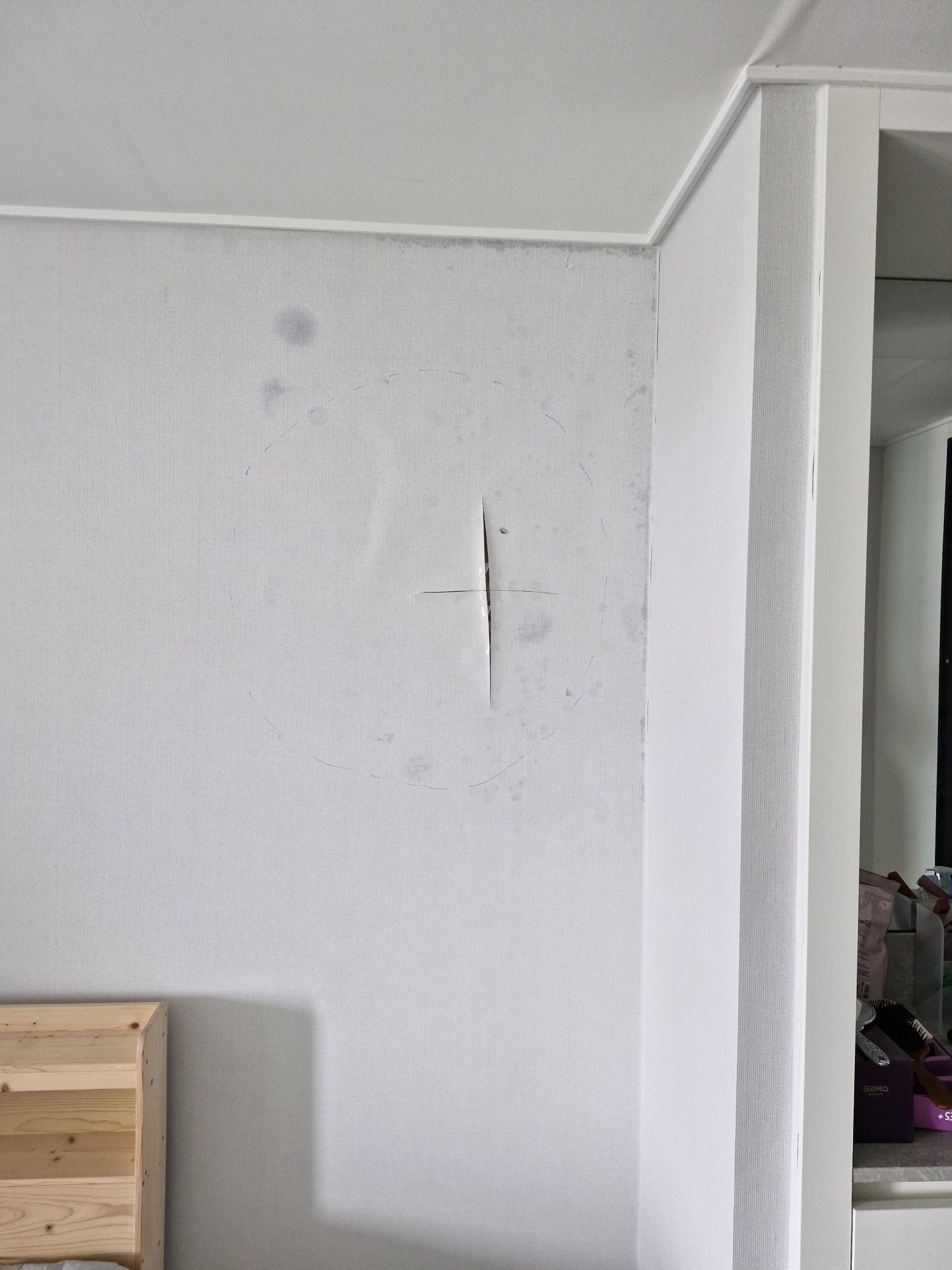 하자보수 팀에서는 벽지에만 곰팡이가 피고 벽지 아래 석고 보드에는 물자국 같은게 없다고 곰팡이 약품 처리하고 벽지 교체를 해줬었는데요.