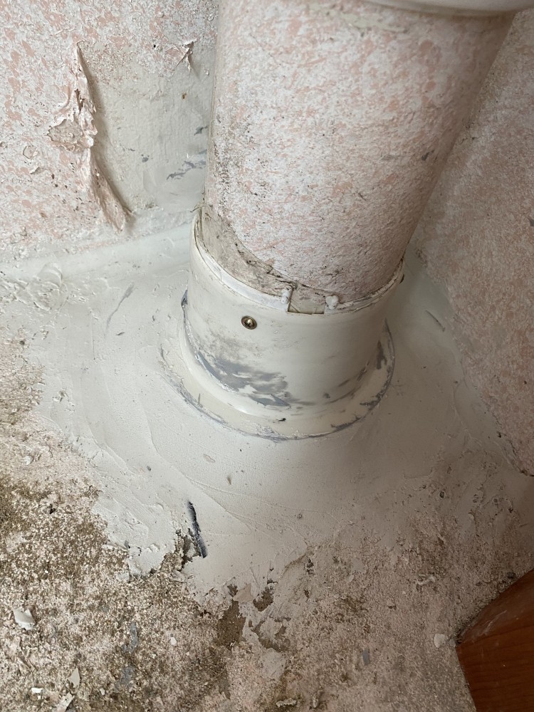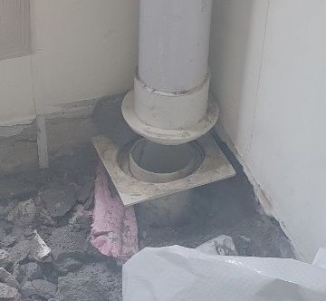 아파트의 우수관은 층 중간의 슬라브에서 아래 위의 것이 서로 만나는 구조입니다. 그러므로 지금처럼 아래쪽에서의 몰탈 처리는 도움이 되지 못합니다.