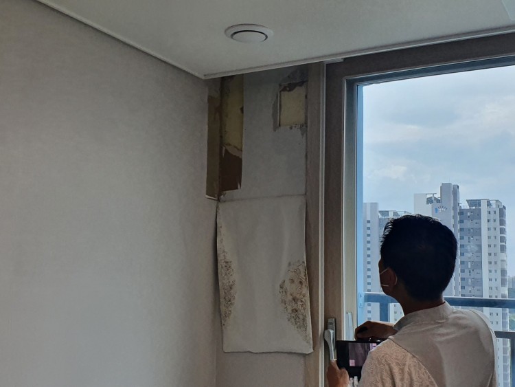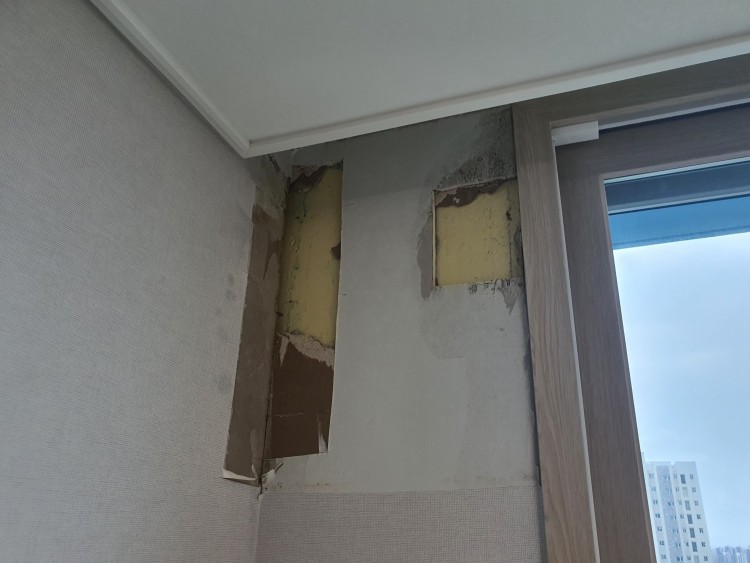 알 수 있을까요? 현재 사진처럼 벽지안에 합판?일부를 도려내놓고 간이로 벽지를 덮어놓은상태로 한달이지났습니다.