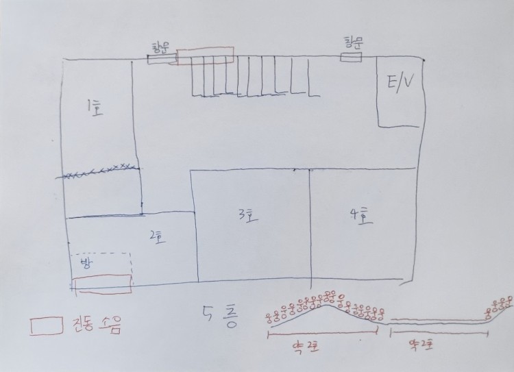 6. 진동소음은 5층이 제일 심하고 진동이 심할때는 골이 울릴정도다.