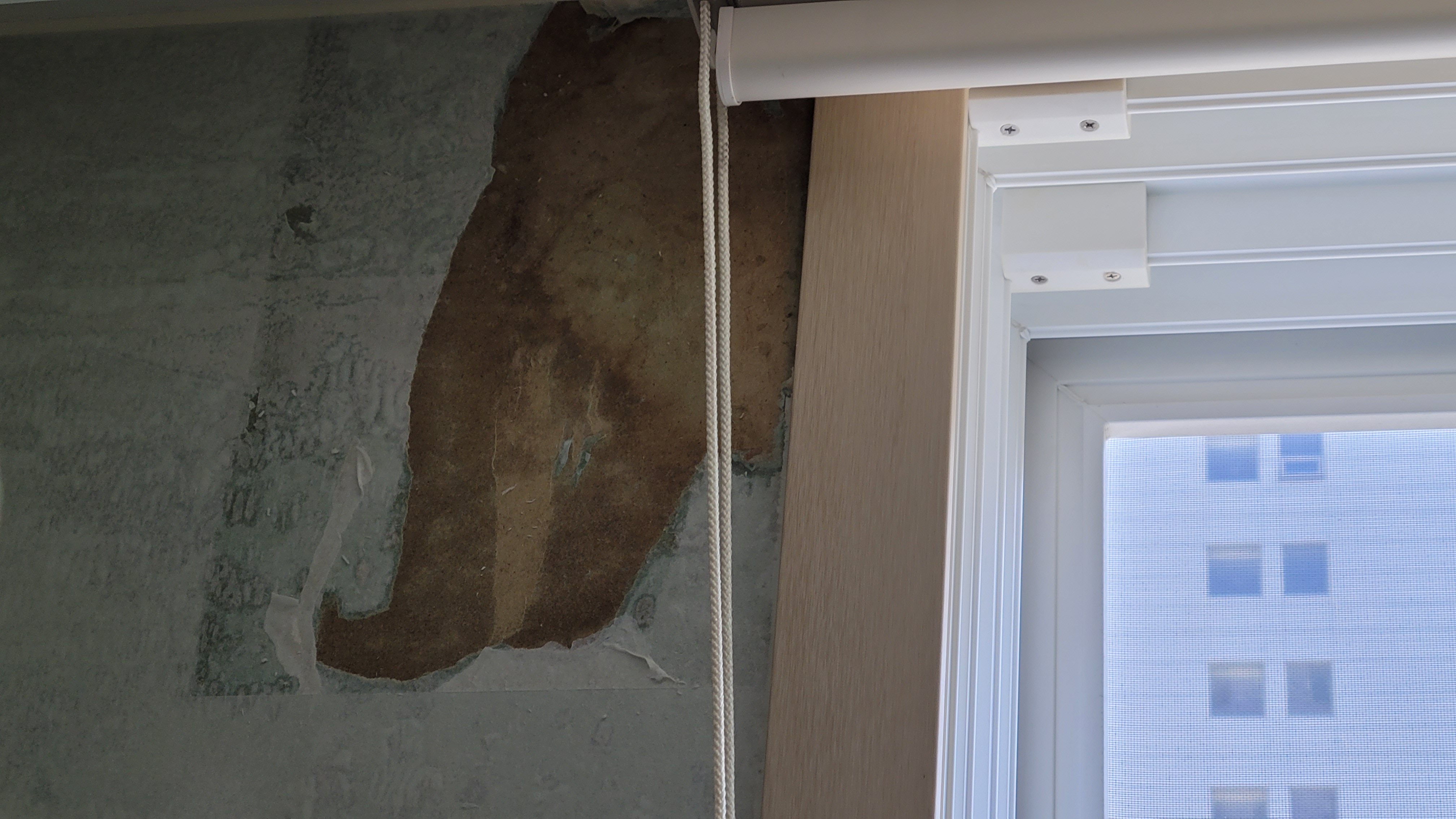 작년 7월 3년차 아파트에 이사오니, 작은방 창호 옆 벽면에 사진과 같은 곰팡이 얼룩이 있었습니다.