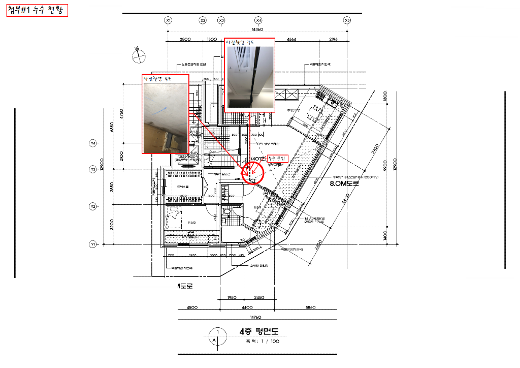 상가주택을 건축 중 다락 테라스 부분에 누수가 발생하여 문의 드립니다. (첨부#1 참조)
