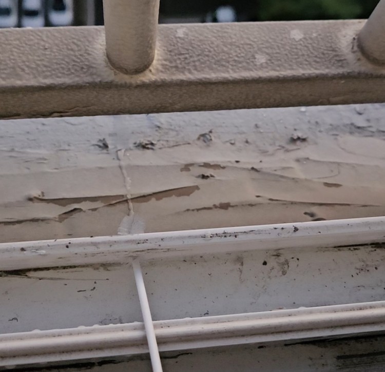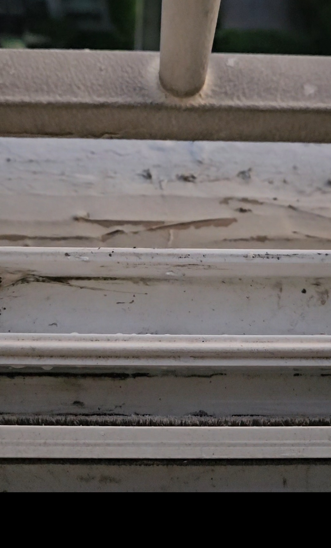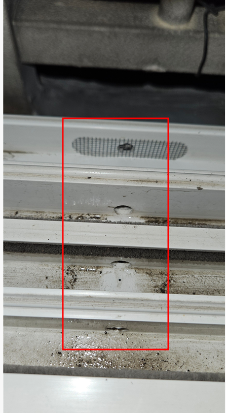 베란다 샤시 레일 물구멍 밖으로 물이 빠지지않고 물이 고여있습니다.