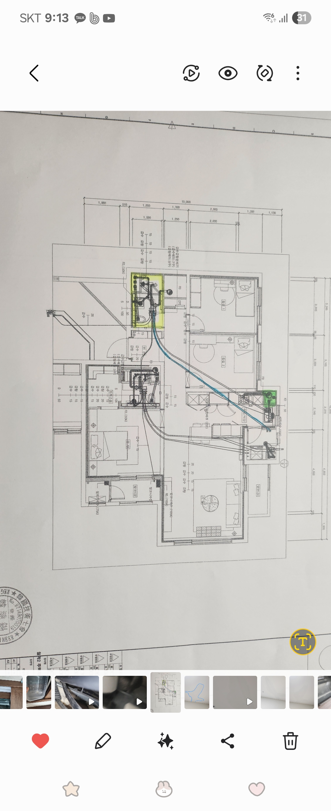 8층 세대입니다. 작년6월에 안방과 작은방1에 대한 누수가 있었던 집인데 수리가 다 되었다고 해서 매수했습니다. (작년에 9층 안방 화장실 욕조 물구멍 깨진 부품으로 인해 8층 안방천장에 누수가 되어 수리하였고, 8층 작은방1은 외벽으로 인한 누수가 의심되어 외벽크랙보수하였습니다. )