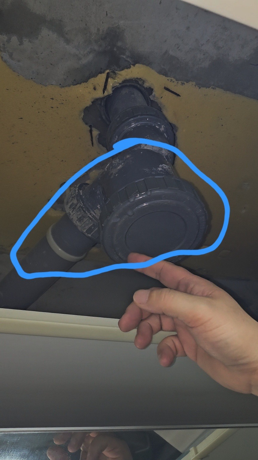 15년차 아파트입니다. 지난주 2주 전쯤에 관리사무소와 아랫집 통해서 안방 화장실 천장에 물이 샌다는 연락을 받았습니다. 내려가서 아랫집 천장 점검구를 열어보니, 하수배관 끝쪽이랑, 배관 옆에 콘크리트(못 주변)에서 물방울이 1분이 1~2방울 씩 떨어지더라고요.