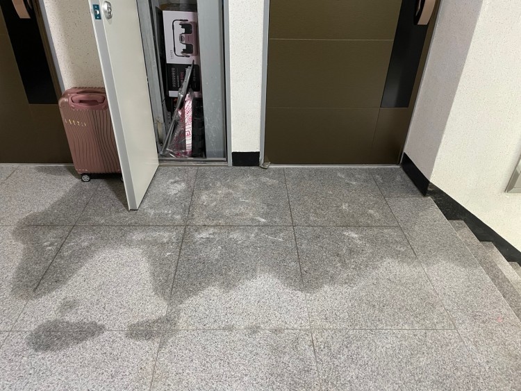 이후 6월 초 정도 집 현관문 앞 대리석에서 누수현상이 발생되어서 임대인에게 이 상황을 이야기 했고