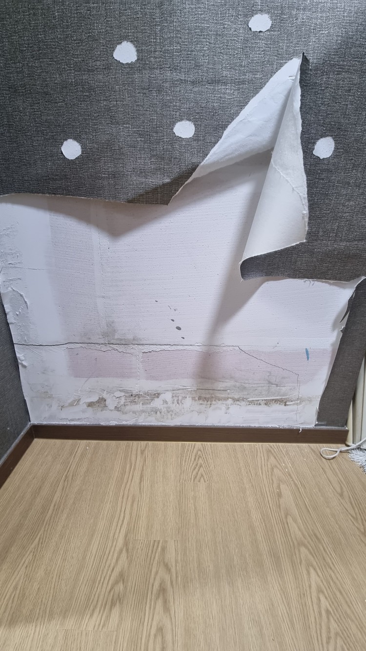 벽지를 뜯어보니 벽이 크랙이 있고 크랙을 통해 물이 나오더군요