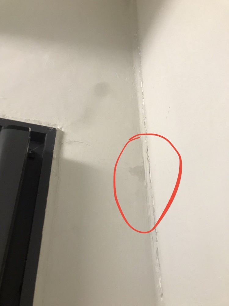 ( 왼쪽 상단은 크랙 as 받은 얼룩이고 빨간 동그라미가 누수)