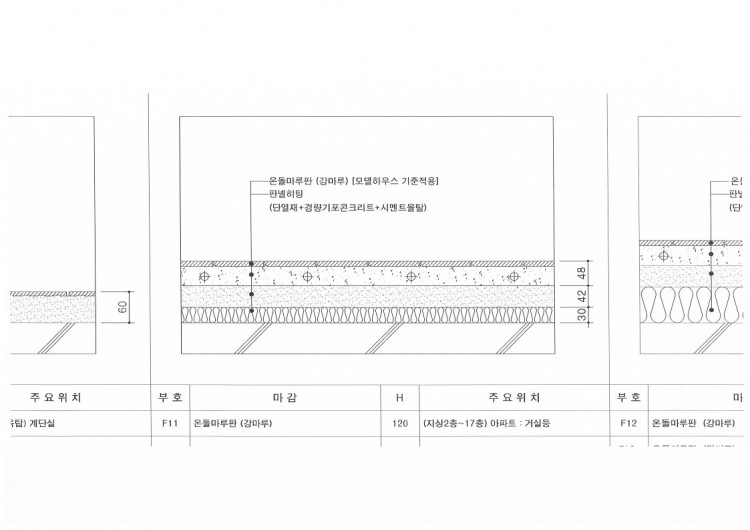 다름이 아니오라 첨부파일의 마감상세도를 보시면 단열재+경량기포콘크리트+난방배관+시멘트몰탈+강마루 순서로 마감이 되어있습니다.
