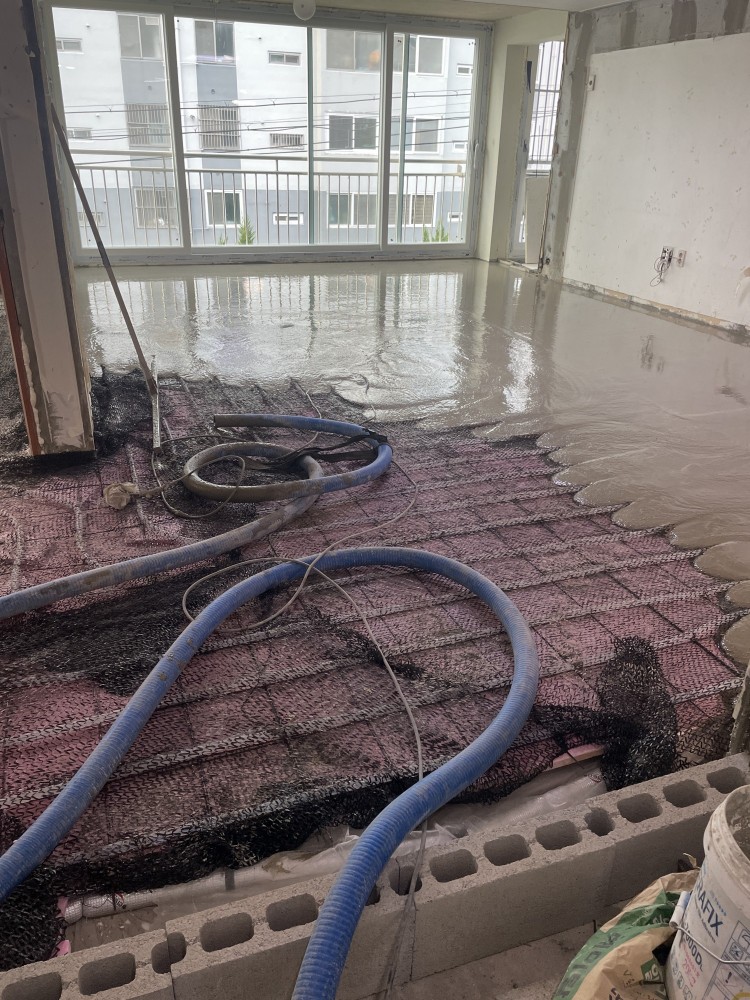 즉, 기포콘크리트없이 배관을 사이에 두고 단열재를 깐 다음, 단열재 높이만큼 폼으로 채우고 잘라 낸 후에 난방배관 작업을 하는 것도 선택가능합니다.