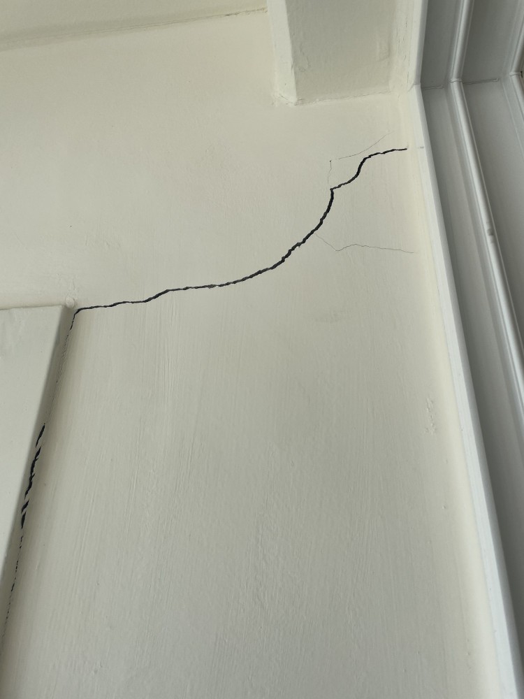 마지막 균열은 괜찮습니다. 콘크리트와 벽돌벽이 만나는 부분의 균열이라서요.