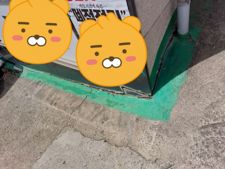 건물과의 코너부위가 균열이 일어납니다.