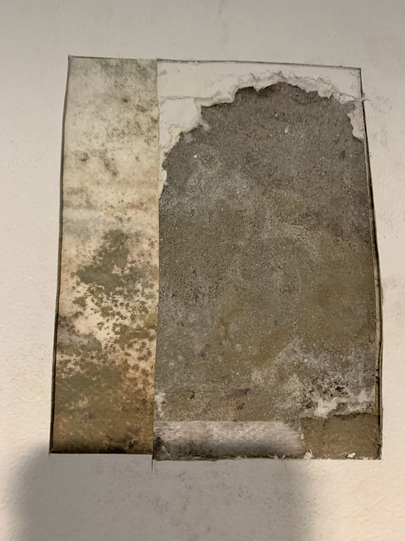 오늘 벽지를 따봤습니다. 역시나 안에는 더 심각하네요... 근데 원래 안쪽에 저렇게 흙(?)이 있나요? 아님 저 갈색 흙같은게 곰팡이인가요?
