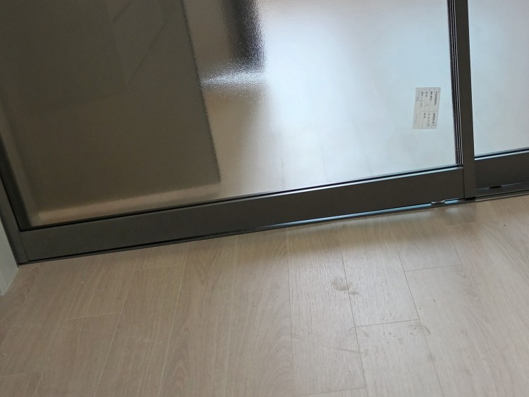 1.5 룸으로 3단 중문이 설치되어 있는데 수평이 맞지 않습니다. 문이 열리고 닫히는 데 문제는 없습니다.