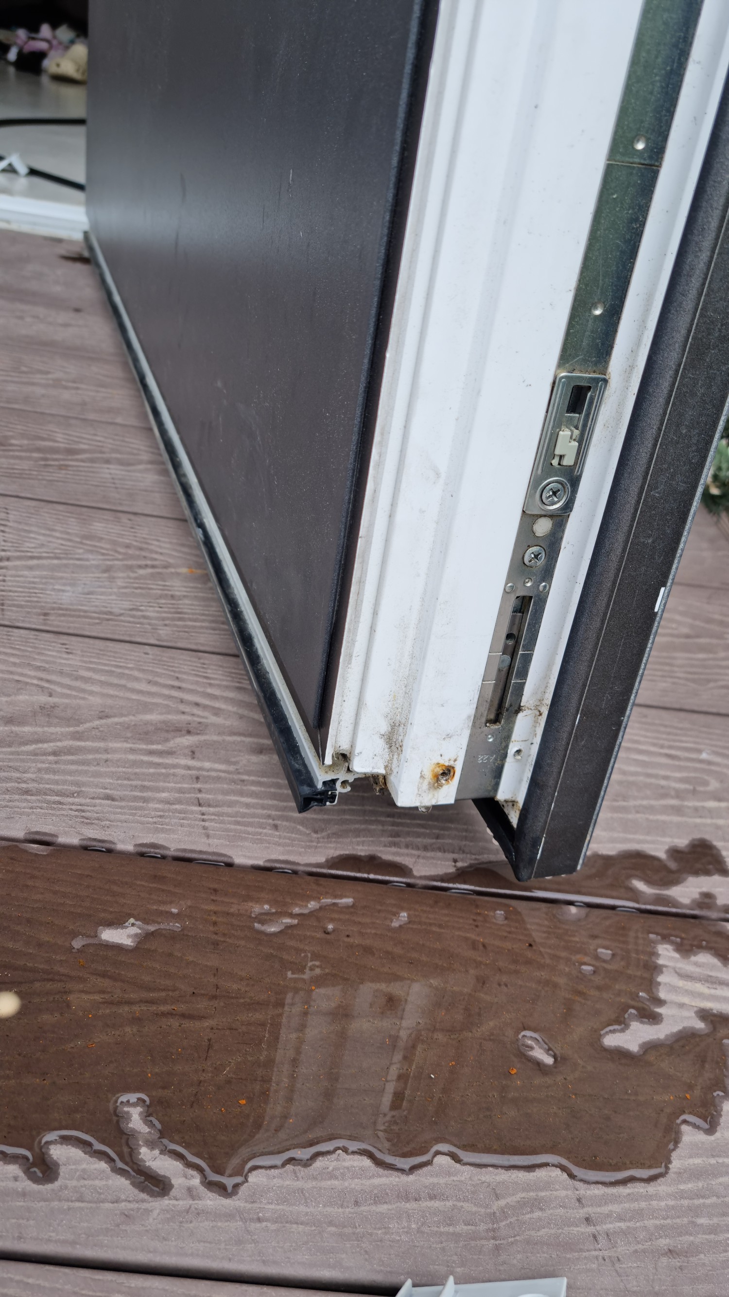 문 상부에 돌출 캐노피가 없거나, 문이 열려진 채로 비를 맞으면 나사 구멍을 통해서 빗물이 들어갈 수도 있다고 합니다.