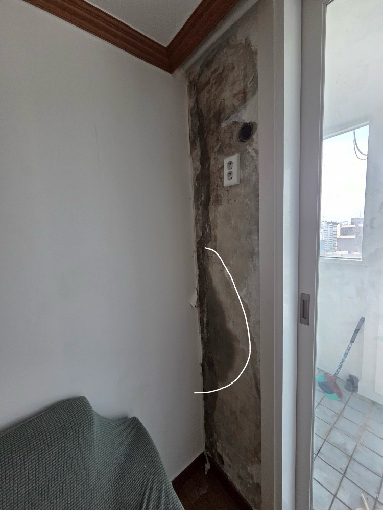 베란다와 거실 사이 중문 벽이 중간지점만 비올때만 젖고있어요