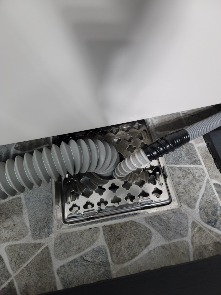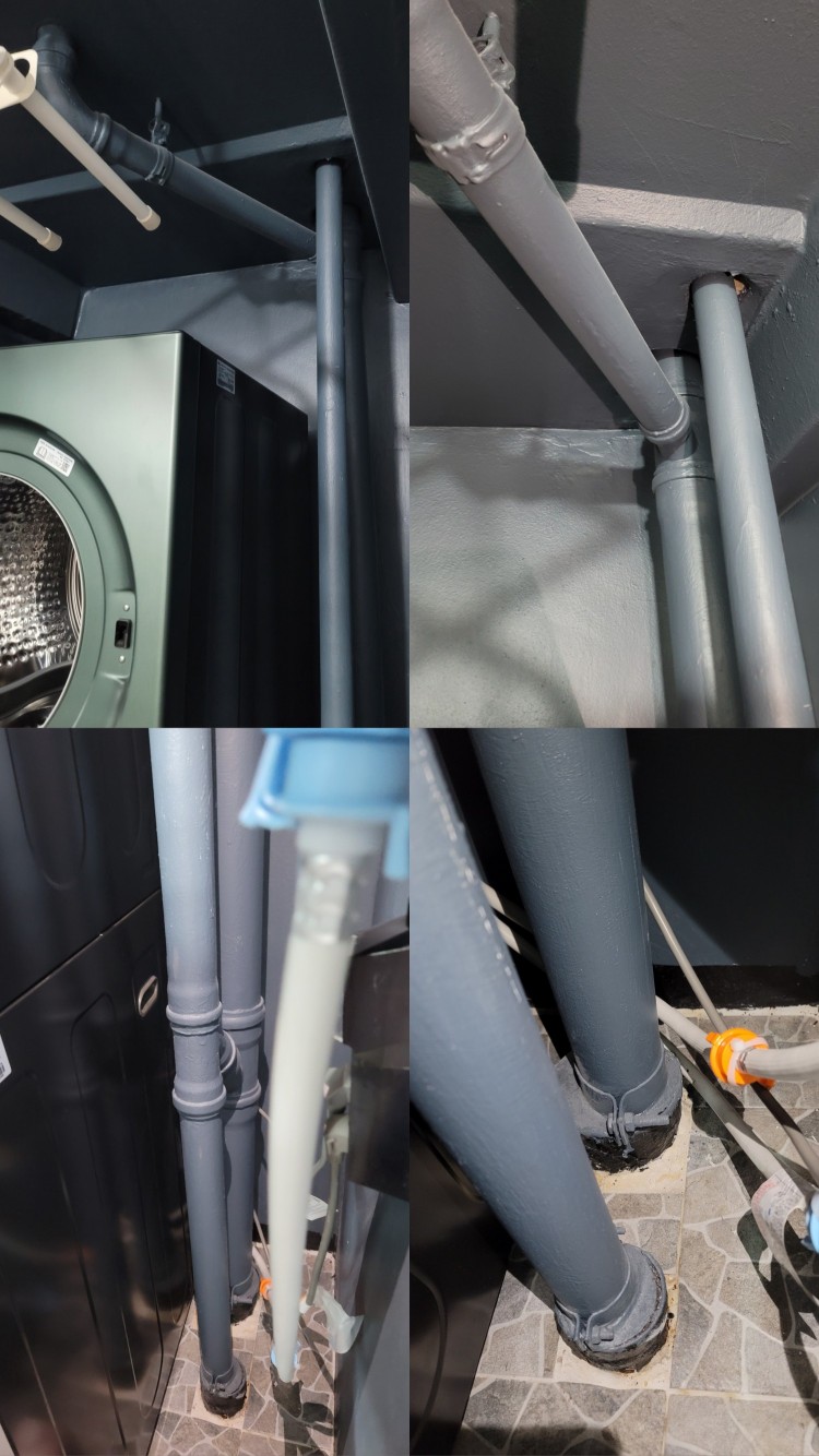 (수리한 오수관과 하수관에 에어컨 배수호스가 있습니다)