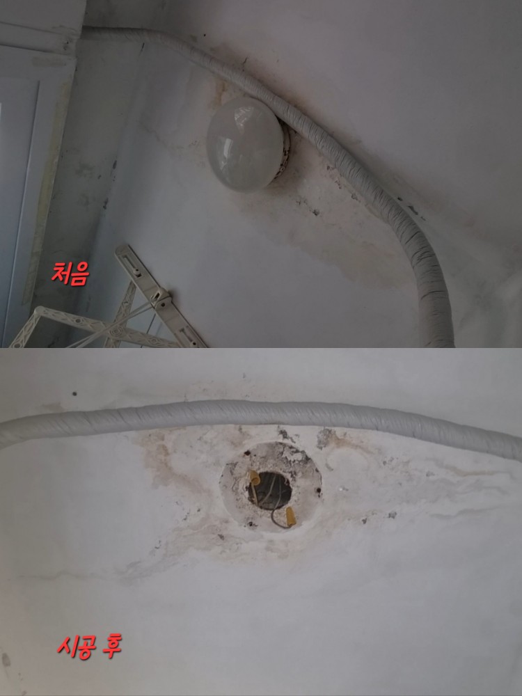 당시 누수는 천장이 젖어있는 정도였고 누수로 인해 누전까지 발생한 상황이었습니다.