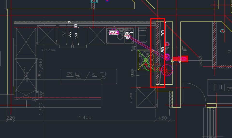 싱크대 뒤 조적벽을 통해 다른집 음식 냄새가 들어오고 있습니다.