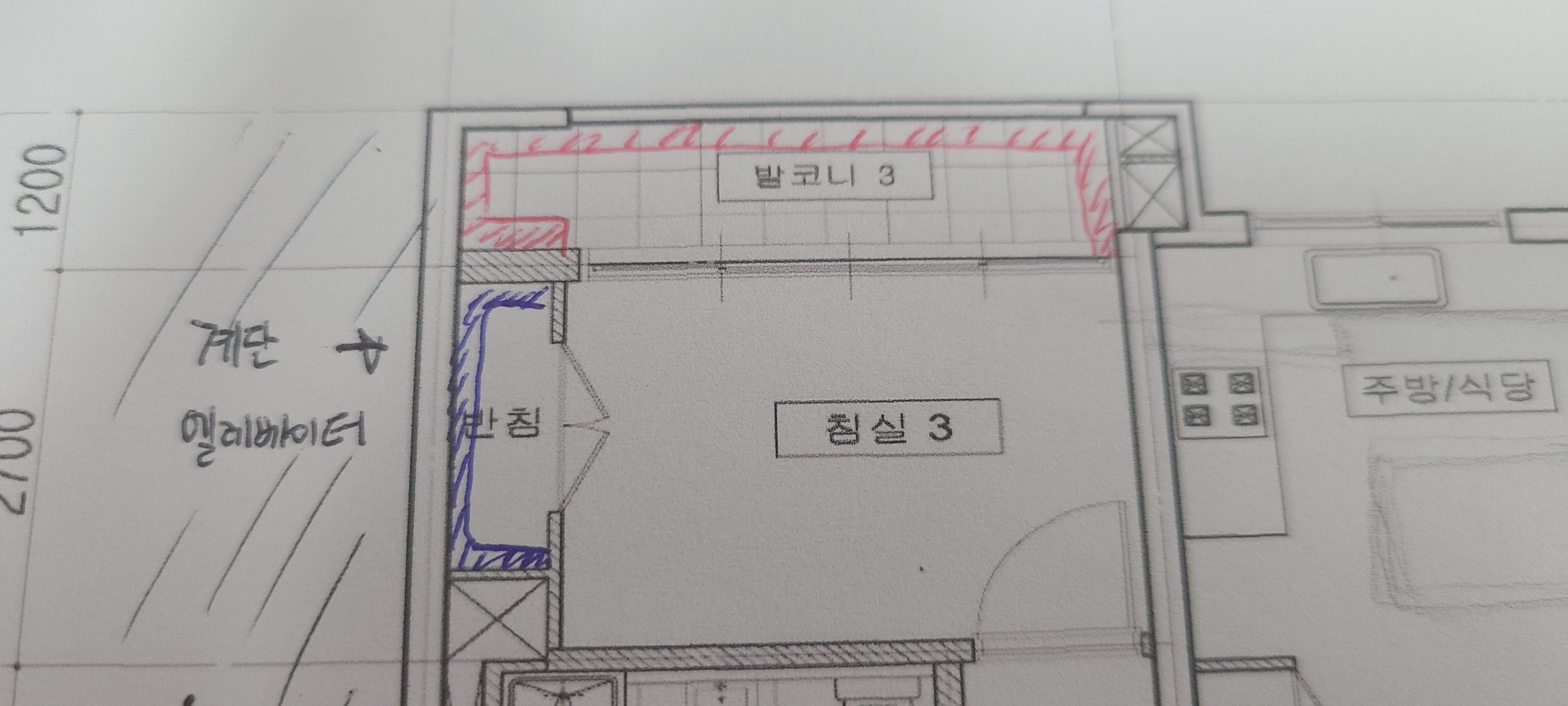 사진에 나와있는 빨간 빗금부분은 외벽쪽이라서 아이소핑크로 벽면 천장 모두 단열을 할 것이구요