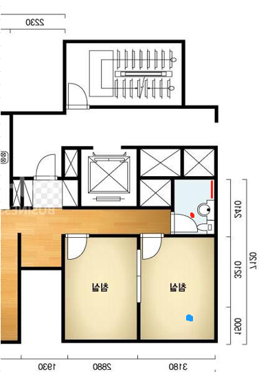 2월10일: B업체분이 오셔서, 보일러배관, 급수 부분등 정밀 재확인결과, 누수없음확인. 그래서 화장실의 샤워배수로(사진의 긴 붉은색)의 플라스틱트레이 주변의 백시맨트 방수가 의심된다며 공사. 2주간 자유롭게 화장실을 쓰면서