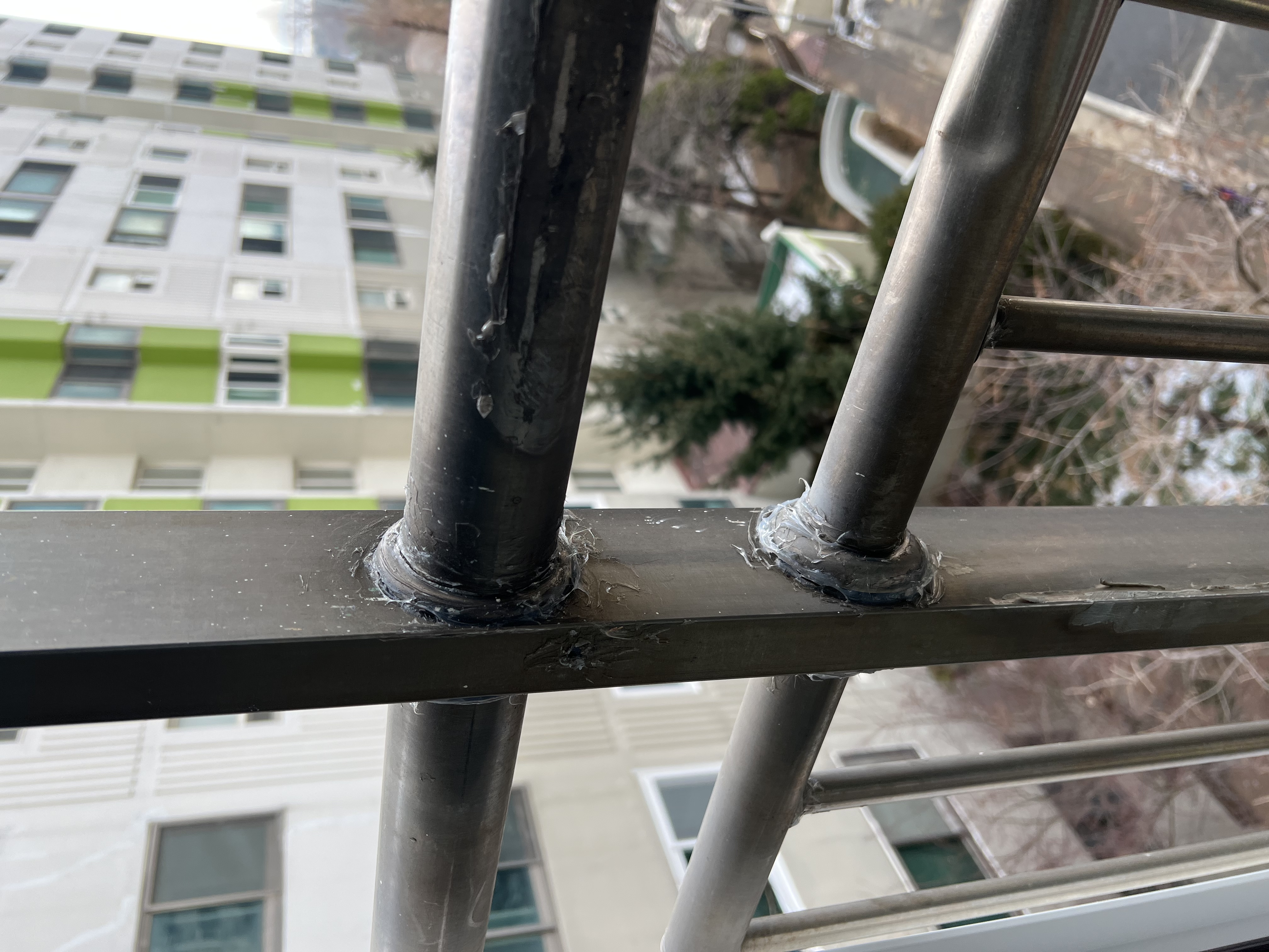 난간의 양 옆에 콘크리트와 만나는 부위의 사진을 한 장 부탁드리겠습니다.