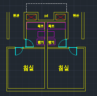 해당 세대 평면은 이런 상황이고 층상배관, 전부 골조로 계획되어있습니다만..