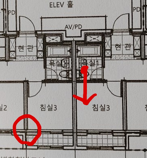 관리실에 있는 도면 중에, 구조도면 말고, 건축도면 중 "단위세대평면도"에서 이 부위를 사진 찍어서 올려 주실 수 있으실까요?