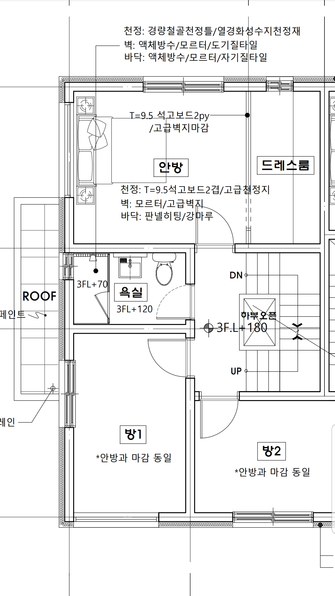 또 3층바닥이 난방이되니..벽의 상하에서 발생하는 온도차가 적을것이고..