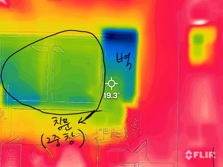 결로 해결과정중 열화상카메라로 찍은사진 좀 봐주세요.