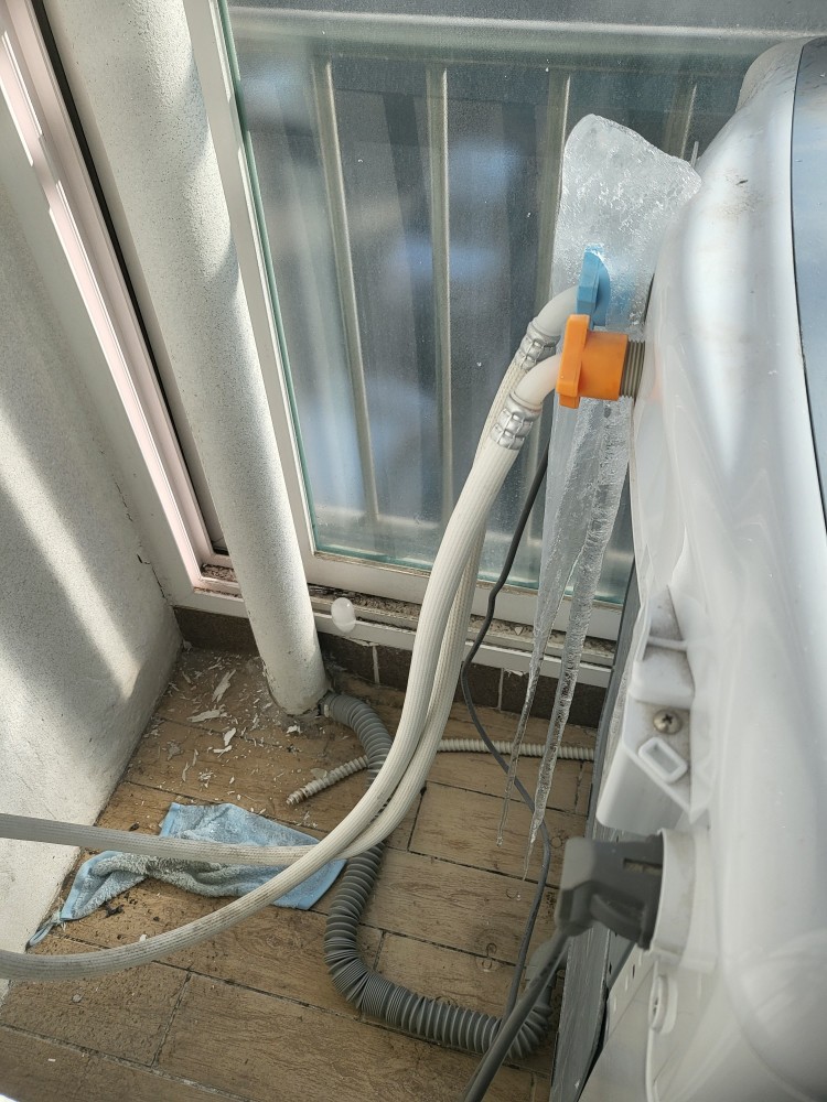 사진의 배수구로 녹은 물이 내려갈 수 있다면 별 다른 조치는 없습니다만, 그렇지 않다면.. 세탁기를 조금 더 안쪽으로 넣고.. 떨어지는 물을 용기에 받을 수 있는 조치를 하시는 것이 더 좋을 것 같습니다.